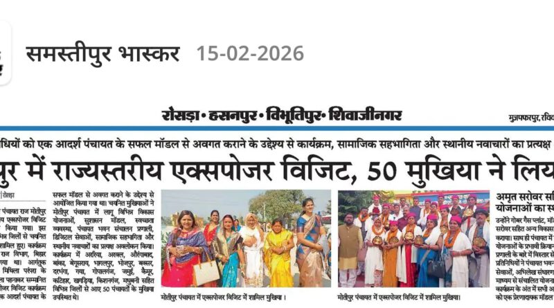 BiharIndiamotipurnewsRoseraSamastipur April 5, 2026 Ranjeet Sahni पंचायती राज विभाग द्वारा,बिहार के 38 जिला के 50 मुखिया जी का एक्सपोजर विजिट कार्यक्रम। आदर्श ग्राम पंचायत राज मोतीपुर, प्रखंड -रोसरा, जिला -समस्तीपुर, बिहार। Read More